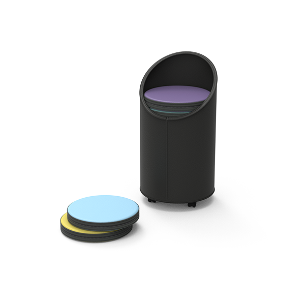 The Vision soft seating line reimagines classroom flexibility with a simple, smart solution: a set of lightweight seat pads housed in a sleek, mobile caddy.