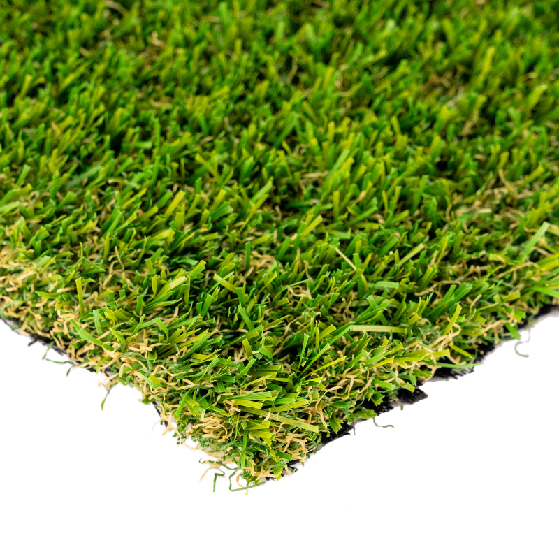 Sequoia Light synthetic turf features a beautiful field and olive green grass blade color duo paired with a green and tan thatch in a lighter, approximately 45-ounce face weight. Perfect for landscapes that experience light to moderate traffic, Sequoia artificial grass makes a wonderful addition to any front lawn, backyard or commercial property! Each grass blade is equipped with U.V. preventive properties during the manufacturing process, so your synthetic turf will not fade! Armed with the latest tuft bind technology, this artificial turf is triple reinforced into the turf backing so the grass blades will stay put–even during playtime with children or your furry friends!